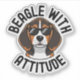 Beagle With Attitude Dog Wearing Sunglasses Sticker. This “Beagle With Attitude” sticker captures serious cool with a stylish beagle in sunglasses. A must-have for beagle lovers who appreciate a little extra swagger.