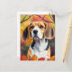 Beagle With Fall Leaves Autumn Art Postcard