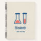A personalised spiral notebook with a cute drawing of a test tube and beaker. Perfect for science types.