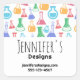 Business stickers with a fun and colourful pattern. Research scientist vibe with beakers and flasks of different shapes and sizes in bright happy colours.