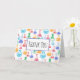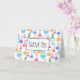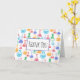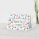 Thank you card with a fun and colourful pattern. Research scientist vibe with beakers and flasks of different shapes and sizes in bright happy colours.