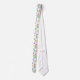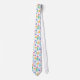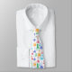 Tie with a fun and colourful pattern. Research scientist vibe with beakers and flasks of different shapes and sizes in bright happy colours.
