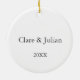 Bear and Bunny Couple Custom Anniversary Valentine Ceramic Ornament