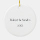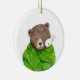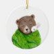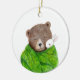 Bear and Bunny in Big Green Blanket Custom Name Ceramic Ornament