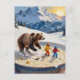 A funny surreal scene of a bear and two kids ski in a bowl of porridge AI generated art
