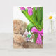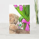 Brown teddy bear with pink tulip bouquet and greeting card to match for 106th birthday.