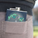 The flask itself is fine. It’s a cheap flask, obviously bought in bulk, however am prepared to overlook that. Given that it is a personalized item, I would have liked to have seen gift boxing instead of the generic packaging. Terrible printing, and/or quality. It’s a cheap, tacky vinyl. It is not cut straight and is also applied in a way that it is overhanging the bottom, causing the glue to catch on items and it will eventually roll and tear, damaging the wrap.