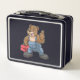 This is a standard metal lunchbox that appears to work just fine. We designed this box ourselves with an uploaded photo and custom text on the front and back. It looks absolutely beautiful except the front of the lunchbox is not centered like it shows in the photo. The print borders don't align with the inset flat part of the box where the preview photo online showed it perfectly centered in there. The back looks nice and centered though.