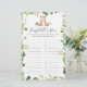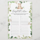 Bear themed baby shower ABC's race game card features a watercolor bear illustration and watercolor greenery eucalyptus garland and elegant handwritten style font.