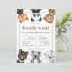 This whimsical baby shower invitation features all the adorable bears found in nature. Baby versions of a red panda bear, giant panda bear, brown bear, polar bear, koala bear and grizzly bear encircle this invitation to create a fun, memorable way to invite everyone to celebrate the mummy-to-be. Easy to customise the wording, font style and font colours.