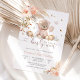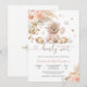 Celebrate your special day with this adorable bear-themed baby shower invitation featuring a sweet teddy bear holding balloons, surrounded by pastel florals, butterflies, and whimsical woodland accents. Perfect for honouring parents-to-be, this elegant design blends soft peach, pink, and beige tones for a warm and inviting look. Customise with your event details to create a memorable keepsake that guests will cherish. Ideal for baby showers, gender reveal parties, and milestone celebrations.
