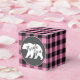 Bear theme baby shower design with a bear silhouette. The pink buffalo check is great for a woodland or lodge theme baby shower!