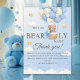 Thank your guests with this adorable bear baby shower thank you card. Featuring a sweet teddy bear floating among clouds and soft blue colours, it’s a heartfelt way to show appreciation after your baby shower.