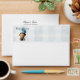 Create unique baby shower themed envelopes featuring blue colours, and a casual chic teddy bear with gingham and balloons. The back has your desired return mailing address. Bear Jean Baby design. Use the template to create special, personalised envelopes.