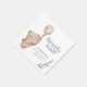 This is a cute a gender neutral sage green and beige baby shower napkin with the phrase "We can bearly wait", featuring a teddy bear holding a beige balloon with eucalyptus leaves adorning this super cute napkin. Matching items are available in the Bear Balloon Neutral Baby Shower Theme collection.