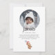 A sweet bear wearing a Santa hat and holding a grey balloon with a little '1' in it, perfect for your Winter Bear themed First Birthday Party! You can change the number 1 in the balloon to any number, and edit all of the other text, or remove the number if you prefer. You can also change the colour of the balloon. In this design you can add your own photo to the invitation.