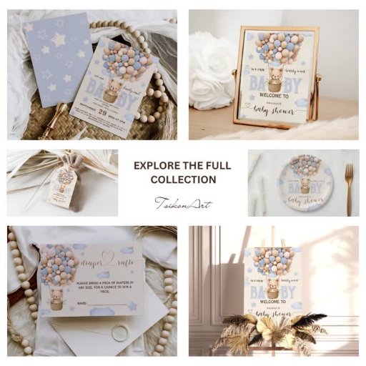 Introducing TsikonArt's adorable Teddy Bear Baby Shower Collection, featuring the sweetest bear soaring high with cute colourful hot air balloons! This collection boasts an irresistibly cute design that's perfect for celebrating the impending arrival of a little one. Our attention to detail and unique artistry truly set this collection apart, just like all our other offerings. At TsikonArt we take pride in creating exclusive designs that make your special moments even more memorable. Welcome the new addition in style with our one-of-a-kind baby shower collection!