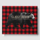 Rustic black bear on a red and black buffalo plaid background birthday party and event guest book. You can easily customise this rustic bear buffalo plaid lumberjack guest book for your event by simply adding the text of your choice in the font style you prefer.
