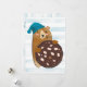 Cute bear wearing a winter hat with a chocolate-chocolate chip cookie on this "from the kitchen of" or home baking "homemade with love" Christmas card for gifting your list with sweets from your oven.