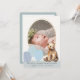 This cute baby boy birth announcement features a cream background with a bear cub and balloons in blue shades. The reverse side features your photos and message. Change your background colour and personalise for your needs. You can find more matching products at my store.