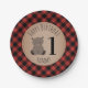 Bear Cub Lumberjack Plaid Birthday Party Paper Plate