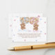 Step into whimsy with our fuzzy teddy bears gender reveal BOOK REQUEST card! Modern meets vintage rustic in minimalist style. Bears clutch bright pink and blue balloons amidst beige and gold tones, with playful watercolor hearts. It's the promise of a special celebration!