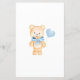 This design features a friendly Teddy Bear with blue bow and heart balloon. He is surrounded by greenery foliage. Text "Guess the Features" is written in modern calligraphy font.