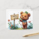 This heartwarming postcard features an adorable teddy bear, standing by a sign that reads "I miss you," set against a backdrop of blooming flowers. With its endearing expression and a gentle clutch on a green leaf, this little bear is sure to convey your feelings of longing and affection. Whether it's a friend, family member, or a loved one far away, this card is perfect for reminding them they're missed and loved.