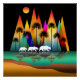 A Family Bear In Forest Colourful Modern Mountains.
