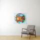 A beautiful bear resting in a green meadow in a centre of a circle on a tapestry.