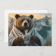 Bear in Robe Holding Coffee Mug Holiday Postcard