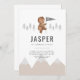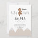 A watercolour bear holding flag with a number '3' in it, along with trees and mountains around the deisgn. Perfect for your mountain forest bear themed Birthday party! You can change the number 3 in the flag to any number, and edit all of the other text.