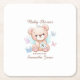 Bear Personalised Baby Shower Square Paper Coaster