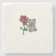 The coasters are gorgeous, a quality feel and heavy weight. They look like a precious archeological find. A rustic stone juxtaposed with a modern floral black and white print. I like the way the print goes slightly imperfect on the cut stone edges giving them a kind-of natural beauty.