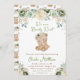 Bear Sage Green and Ivory Flowers Baby Shower Invitation
