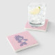 The coasters are gorgeous, a quality feel and heavy weight. They look like a precious archeological find. A rustic stone juxtaposed with a modern floral black and white print. I like the way the print goes slightly imperfect on the cut stone edges giving them a kind-of natural beauty.