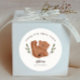 Cute bear theme birthday party favour sticker featuring illustration of a cub rolling on his back. The text says "thank you beary much."