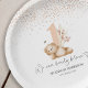 Organising a first birthday, these sweet bearly believe it birthday paper plates will be the perfect addition to your planning. Featuring the saying 'WE CAN BEARLY BELIEVE IT!', an illustration of a watercolor bear holding pampas grass, peach delicate flowers, and a stylish invitation template which is easily edited. The font styles, size and colour can be changed by clciking on the customise further link after personalising.