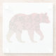 This design is the outline of a bear with a red or maroon to beige colour gradient and the silhouette of a tree inside.