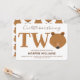 Our little cub is turning two second birthday invitation. This invitation is brown and white with the word "Two" in large letters with a bear face illustration as the last letter of the word. Simply, customise this invitation, add it to your cart, and happy birthday to your wonderful toddler!