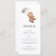A menu card featuring a sweet bear holding 3 brown balloons, ideal for your teddy bear's picnic party! The balloons are neutral toned but you can also change the colour of each one if you prefer. You can also change the 'ONE' letters or delete them.