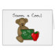 A teddy bear with a green writing board and black text that reads "School is Cool!" is featured on school T-shirts, mugs, mousepads, book bags, stickers, magnets, and more, great for kids who love school and great for teachers!