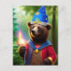 An image of a brown bear wizard with fire stick and wizard outfit.