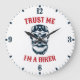 Customisable funny garage Wall Clock with beard scull and words "Trust me, I am a biker".
