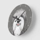 Bearded Collie Cute Dog Drawing Round Clock