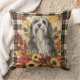 Bearded Collie Dog Fall Watercolor Flowers Cushion