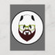 A black and white, panda bear wearing green glasses. The panda has a brown beard and moustache. The background is a pink circle. A fun, funny, humourous, hipster design.
