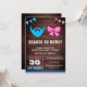 Amaze your guests with this cute gender reveal invite featuring a blue beard and a pink bow with modern typography against a barn wood background. Simply add your event details on this easy-to-use template to make it a one-of-a-kind invitation.