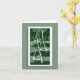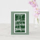 This card features a reproduction of an Aubrey Beardsley illustration of 3 graceful swimming swans in Art Nouveau style. Available in 2 sizes, this card is blank inside for your writing or you can "customise" it to have your own words printed. Shown in white on dark green with a light green background. Also available separately in Blue/Brown or Black.
