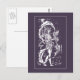 This beautiful image is adapted from illustrations done by famous artist Aubrey Beardsley for a special edition of Malory's "Morte D'Arthur", circa 1892. This postcard features a knight of Camelot in a garden. White on black dark lavender.